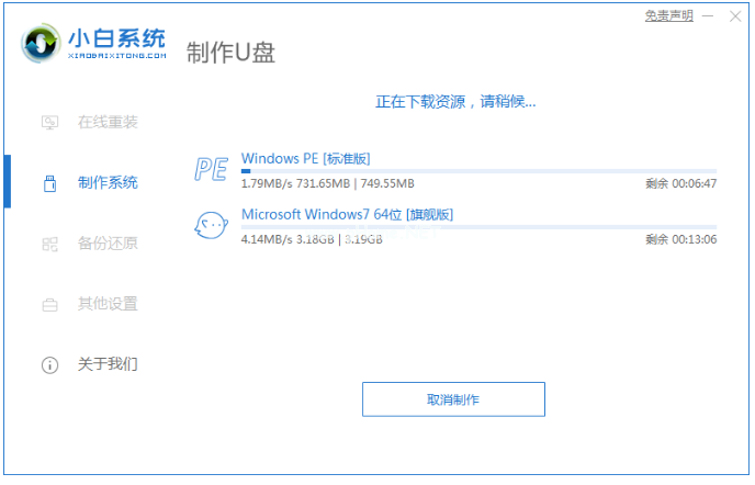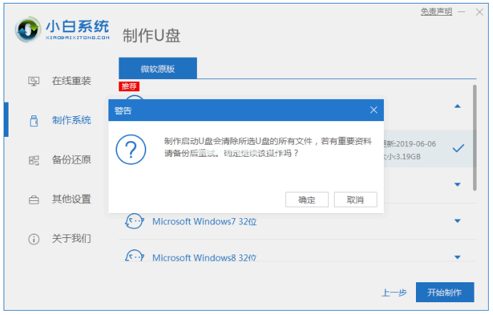 2、選擇windows7系統(tǒng)之后,點擊開始制作。