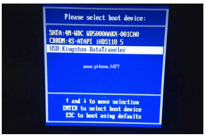 4、插入u盤啟動盤進(jìn)電腦接口中,開機不斷按啟動熱鍵進(jìn)啟動界面,選擇u盤啟動項按回車確定進(jìn)入到pe選擇界面,選擇第一項pe系統(tǒng)按回車進(jìn)入。