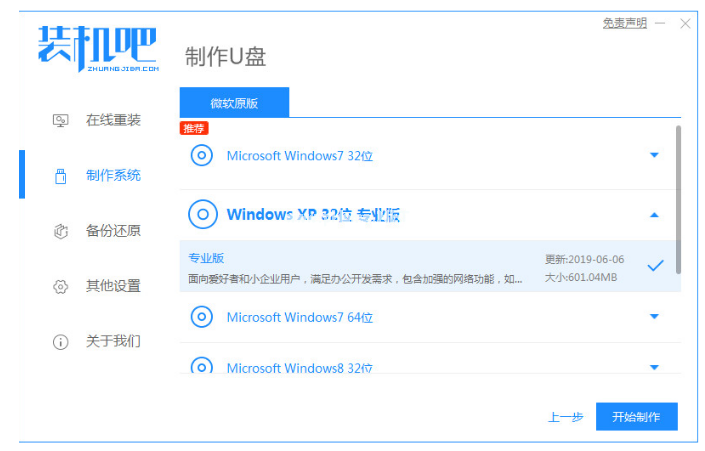 2、選擇windows7系統(tǒng),再點擊制作;