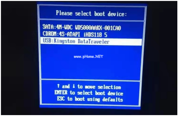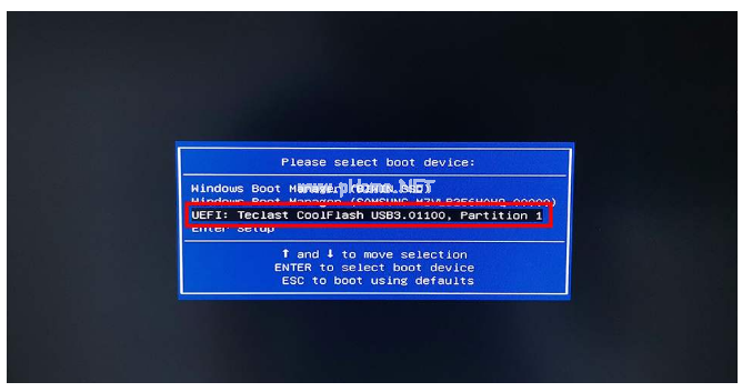 2、完成之后,拔掉U盤插入到需要重裝的電腦借口上,開機或重啟電腦,需要不停的反復(fù)按U盤啟動快捷鍵如F12鍵,進入啟動項設(shè)置界面。使用上下鍵選擇U盤選項后回車進入下一步,一般帶有“USB”字樣的選項即為U盤選項。