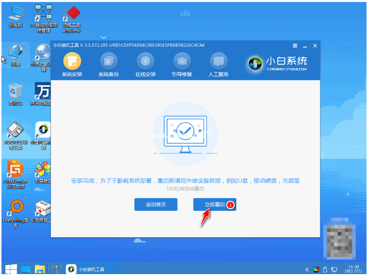 8、系統(tǒng)安裝完成之后,點擊立即重啟。