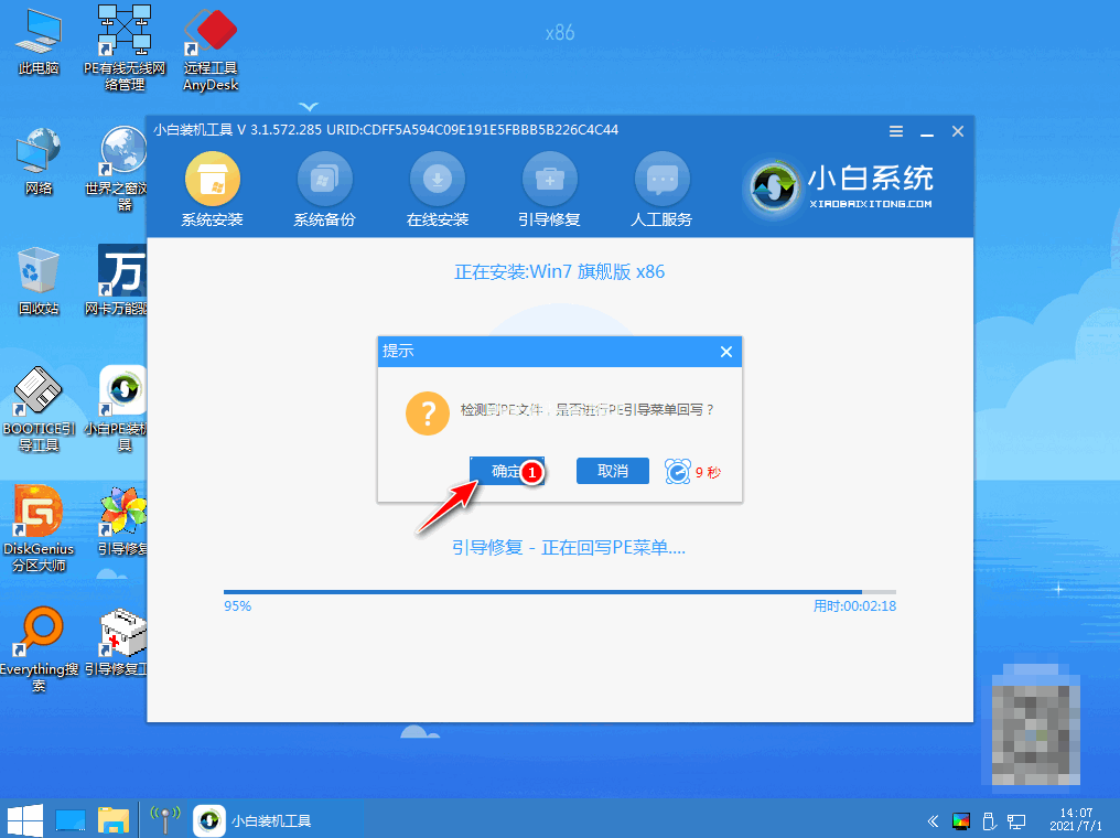 8、進(jìn)入到到win7安裝頁面,回寫PE菜單。