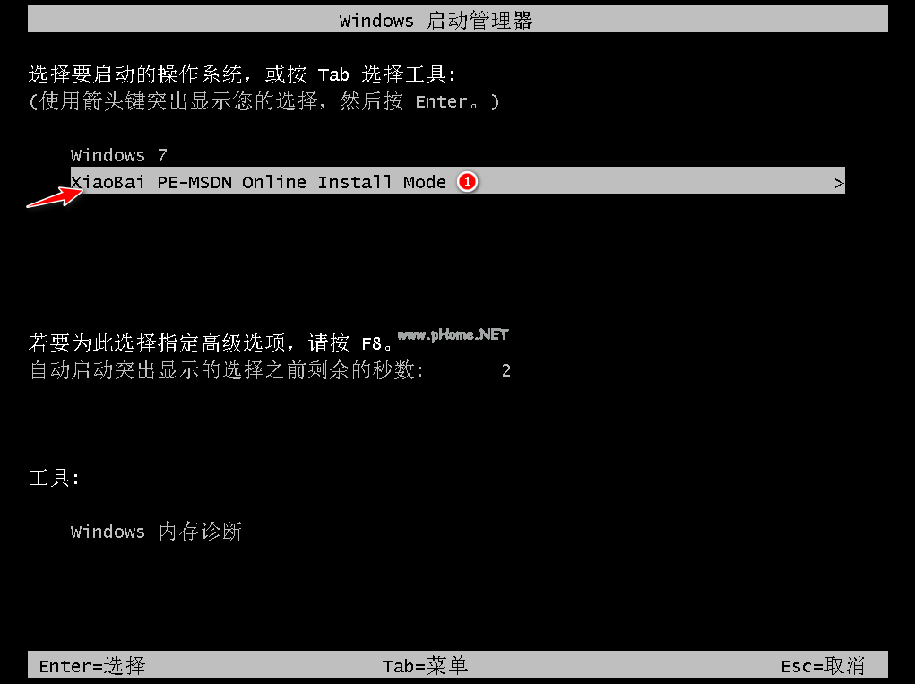 5、啟動(dòng)管理器,選中小白PE系統(tǒng)。