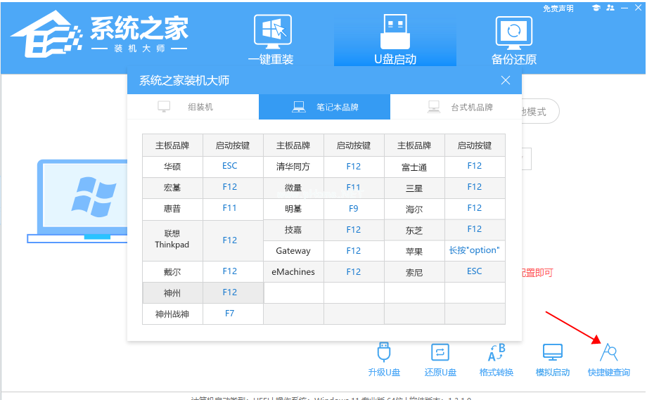 8、查找自己電腦主板的U盤啟動(dòng)盤快捷鍵。