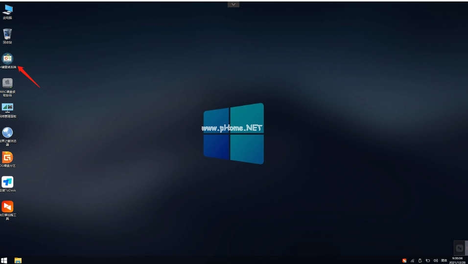10、進(jìn)入PE界面后,點(diǎn)擊桌面的一鍵重裝系統(tǒng)。