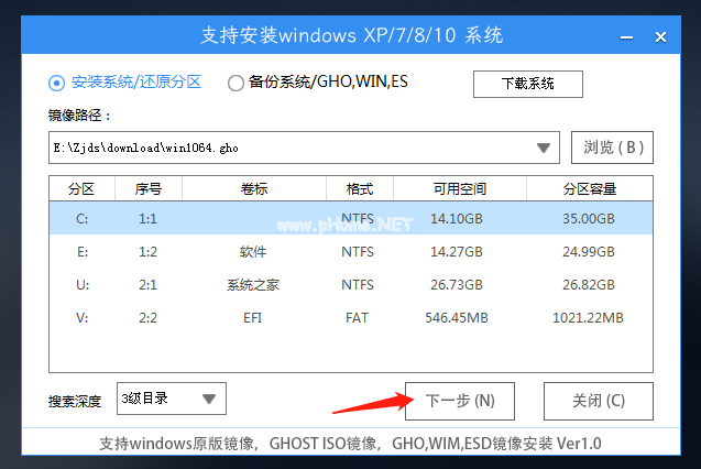 11、打開工具后,點(diǎn)擊瀏覽選擇U盤中的下載好的系統(tǒng)鏡像ISO。選擇后,再選擇系統(tǒng)安裝的分區(qū),一般為C區(qū),如若軟件識別錯(cuò)誤,需用戶自行選擇。