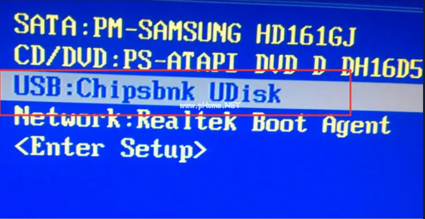 7、將u盤插入要安裝系統(tǒng)的電腦,開機(jī)按啟動(dòng)熱鍵進(jìn)入系統(tǒng),選擇usb選項(xiàng),回車。
