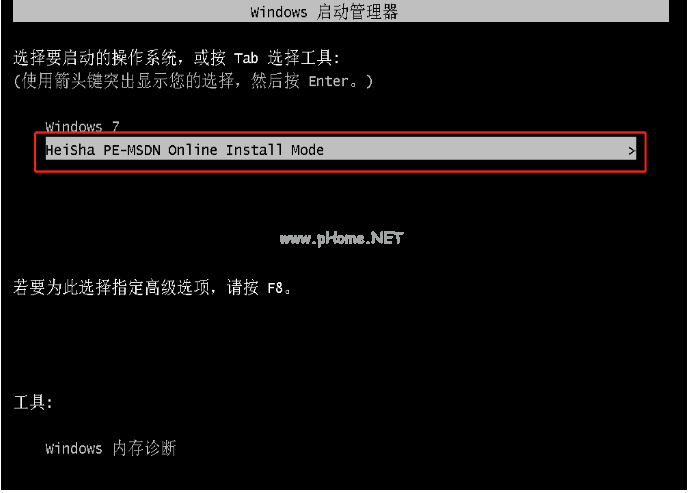 7、選擇“HeiSha PE”模式按回車進(jìn)入pe系統(tǒng)。