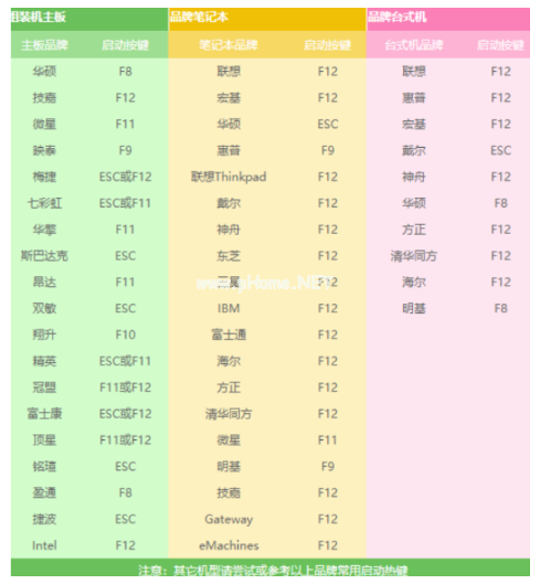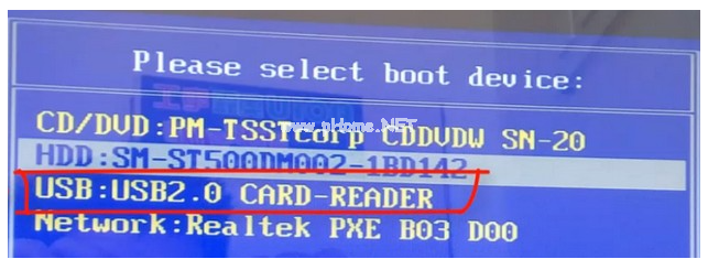 5、重啟電腦,開機時按熱鍵進入 Bios 或者快速引導(dǎo)菜單的界面,進入后使用方向鍵選擇U盤選項。U盤啟動快捷鍵一般為 F12,有些可能是 Esc、Del、F2 之類的。具體大家可以參考下圖。