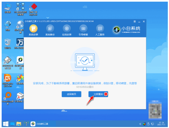 6、系統(tǒng)安裝完成之后,雙擊“立即重啟”將電腦進(jìn)行重啟的操作。