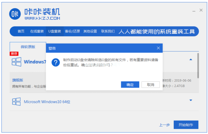3、制作過(guò)程將會(huì)清除U盤(pán)的文件,備份完成之后,選擇確定。