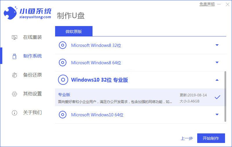 2、選擇要安裝的系統(tǒng)版本,點(diǎn)擊開(kāi)始制作。