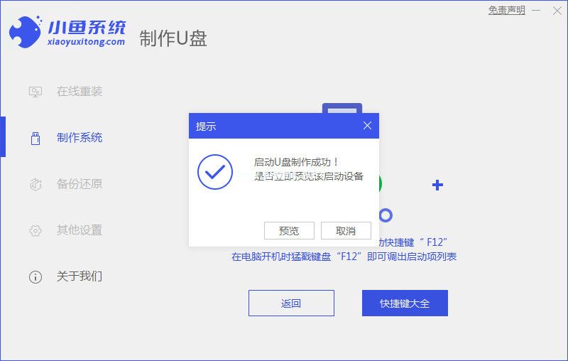 5、提示u盤(pán)制作成功后,記住開(kāi)機(jī)熱鍵,點(diǎn)擊預(yù)覽查看啟動(dòng)熱鍵。