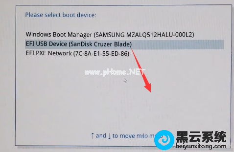 4、最后,插入已經(jīng)制作好的U盤啟動(dòng)盤,重啟時(shí)不停的按“F12”打開(kāi)快速引導(dǎo)菜單界面,選擇識(shí)別所制作的U盤啟動(dòng)回車從U盤啟動(dòng)(一般以u(píng)efi開(kāi)頭的U盤),如圖所示;