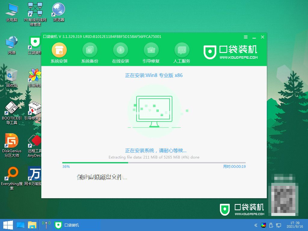 3、使用口袋裝機工具制作u盤重裝系統(tǒng)win8