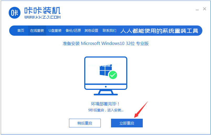 3、系統(tǒng)文件下載好及驅動備份好后,會提示系統(tǒng)部署成功,接著會自動重啟電腦繼續(xù)安裝系統(tǒng),我們只要點擊立即重啟即可,等待軟件完成所有安裝步驟,即可完成整個系統(tǒng)的安裝,如下圖所示: