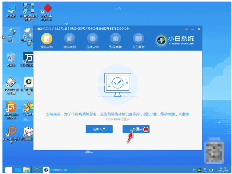 5、電腦環(huán)境部署完畢之后,我們選擇立即重啟電腦。
