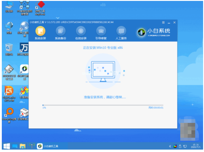 5、雙擊打開(kāi)小白裝機(jī)工具安裝系統(tǒng)到c盤(pán),請(qǐng)大家耐心等待軟件自動(dòng)安裝,完成后就選擇重啟。