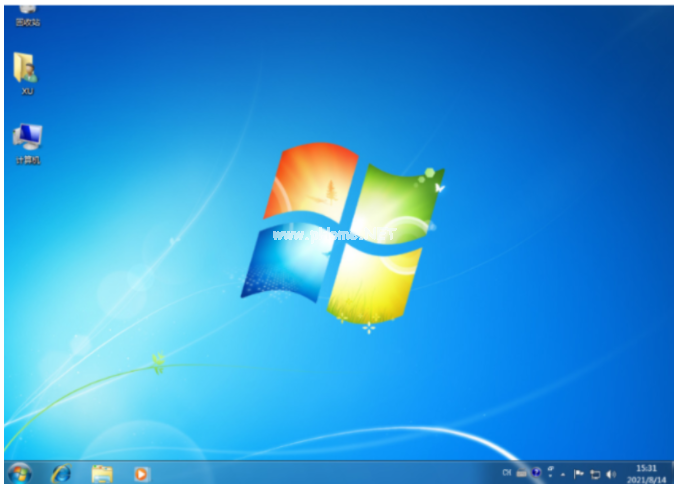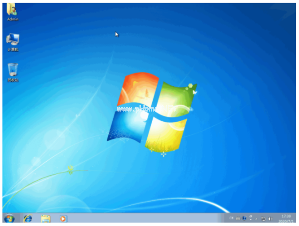 6.等待安裝完成后,選擇重啟電腦,進(jìn)入系統(tǒng)桌面即說(shuō)明電腦u盤(pán)系統(tǒng)重裝win7成功。