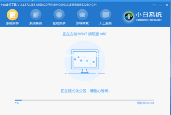 2、裝機(jī)工具開(kāi)始自動(dòng)安裝,完成之后重啟電腦。