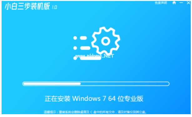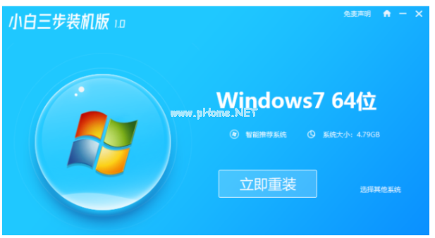 1、打開(kāi)小白三步裝機(jī)軟件,選擇win7系統(tǒng),點(diǎn)擊立即重裝。