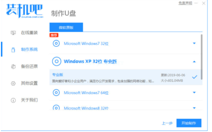 2.選擇我們需要安裝的系統(tǒng)版本,點(diǎn)擊開(kāi)始制作。