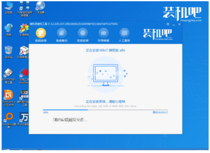 5.、在桌面上雙擊打開(kāi)裝機(jī)吧工具,選擇需要下載好的win7系統(tǒng)鏡像,點(diǎn)擊安裝到c盤(pán)。