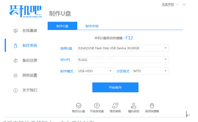 1、打開裝機(jī)吧工具軟件,插入U(xiǎn)盤到電腦,點(diǎn)擊開始制作。