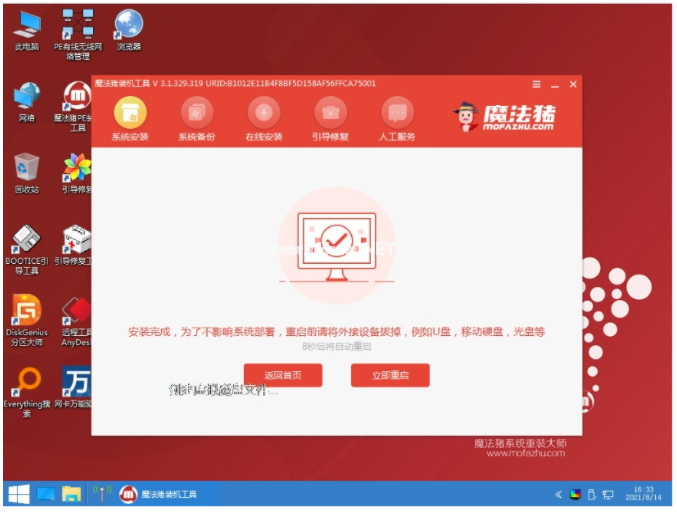 5、軟件自動(dòng)開始安裝,提示完成后選擇重啟電腦。
