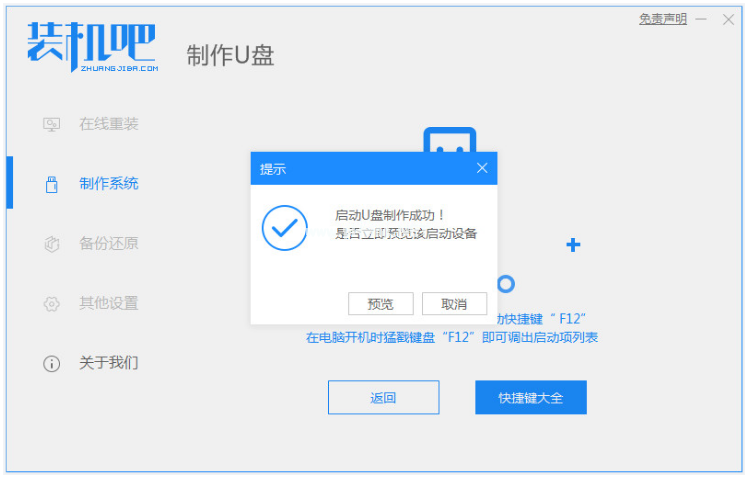 3、提示制作成功,可以先預覽電腦主板的啟動快捷鍵,拔掉u盤退出。