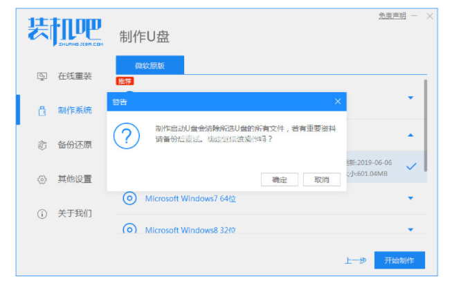 2、選擇要安裝的系統(tǒng)版本,點擊開始制作。