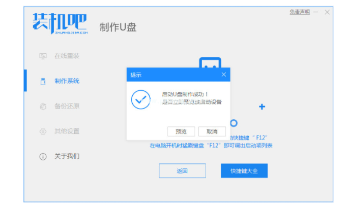 1、下載并運行裝機吧軟件,插入U盤,打開軟件,選擇制作系統(tǒng)。
