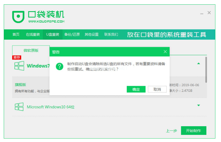 3、隨后確定已提前備份U盤數(shù)據(jù)后,點擊確定。