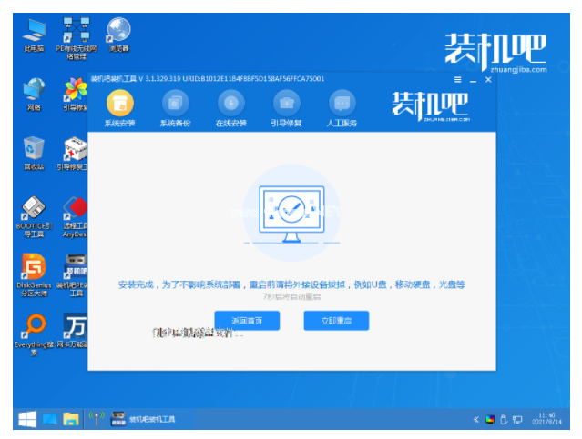 3、等待系統(tǒng)自動安裝完成,部署完成后,點擊立即重啟。9、進入系統(tǒng)桌面即完成。